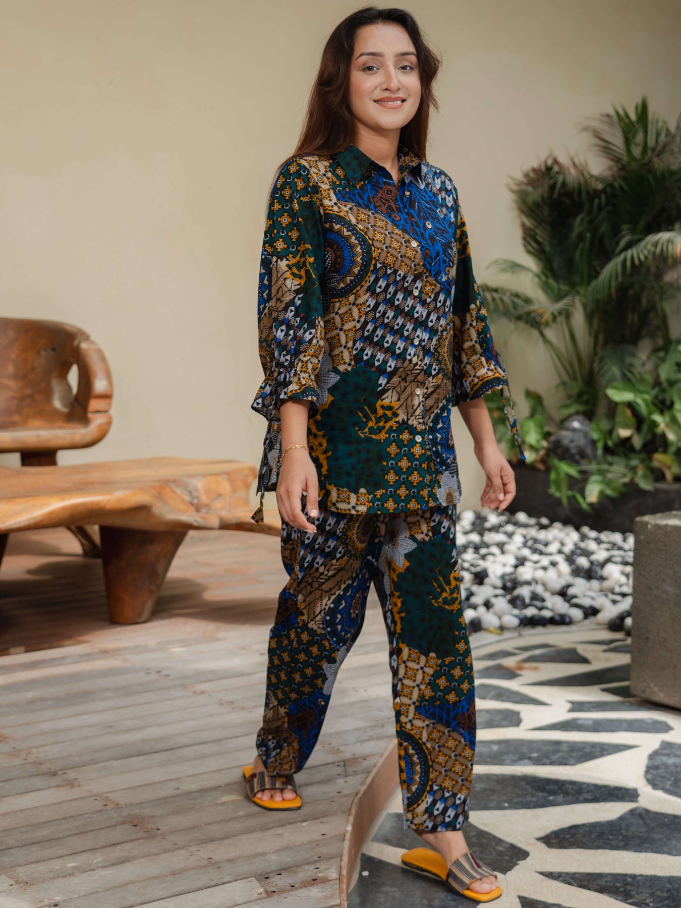 Make most of the comfort offered by range of night suit. The classic colour and fun pattern of this piece makes it a must have for your wardrobe. Wear it with contrast coloured flip flops for a complete relaxed day at home!