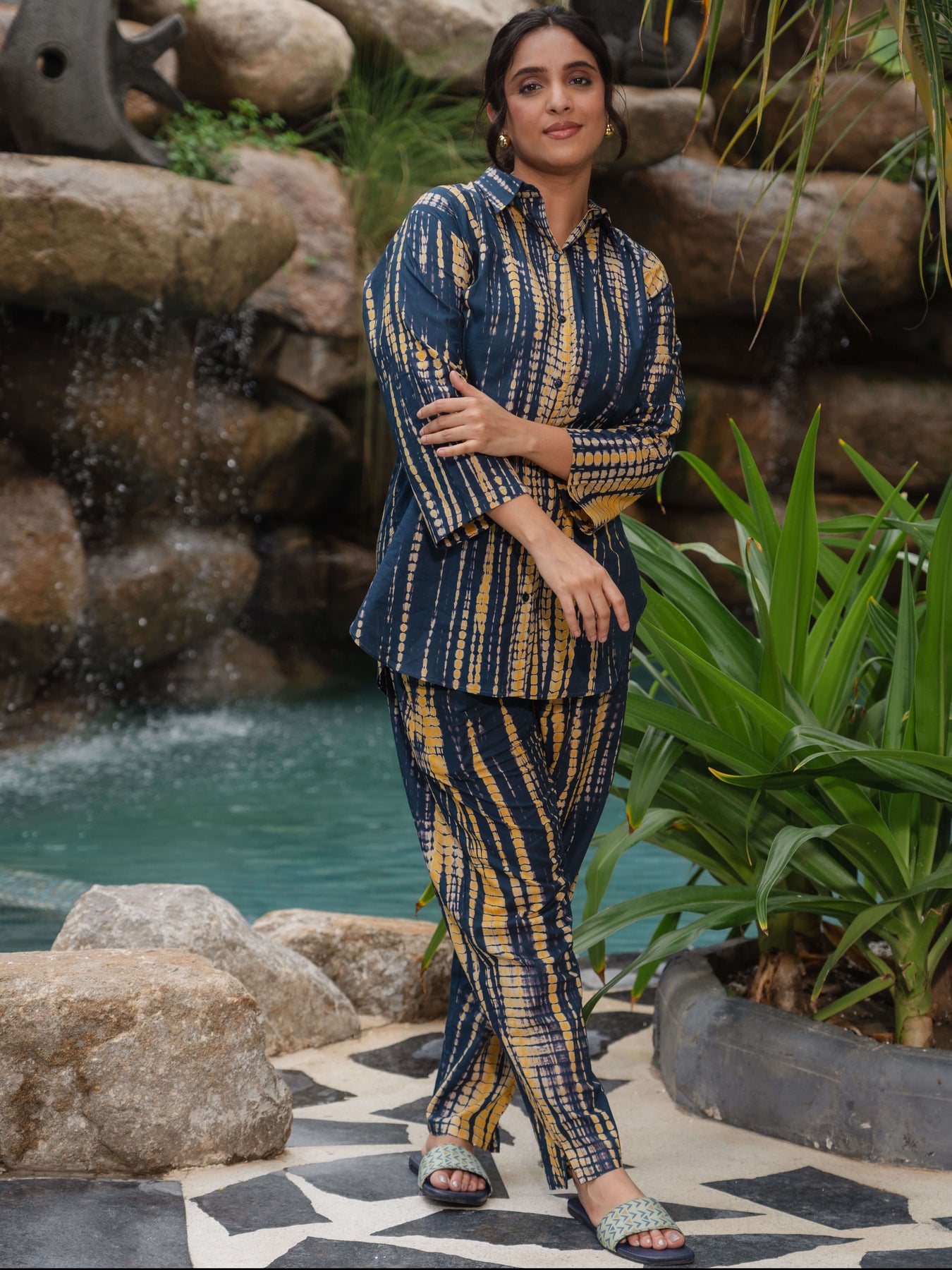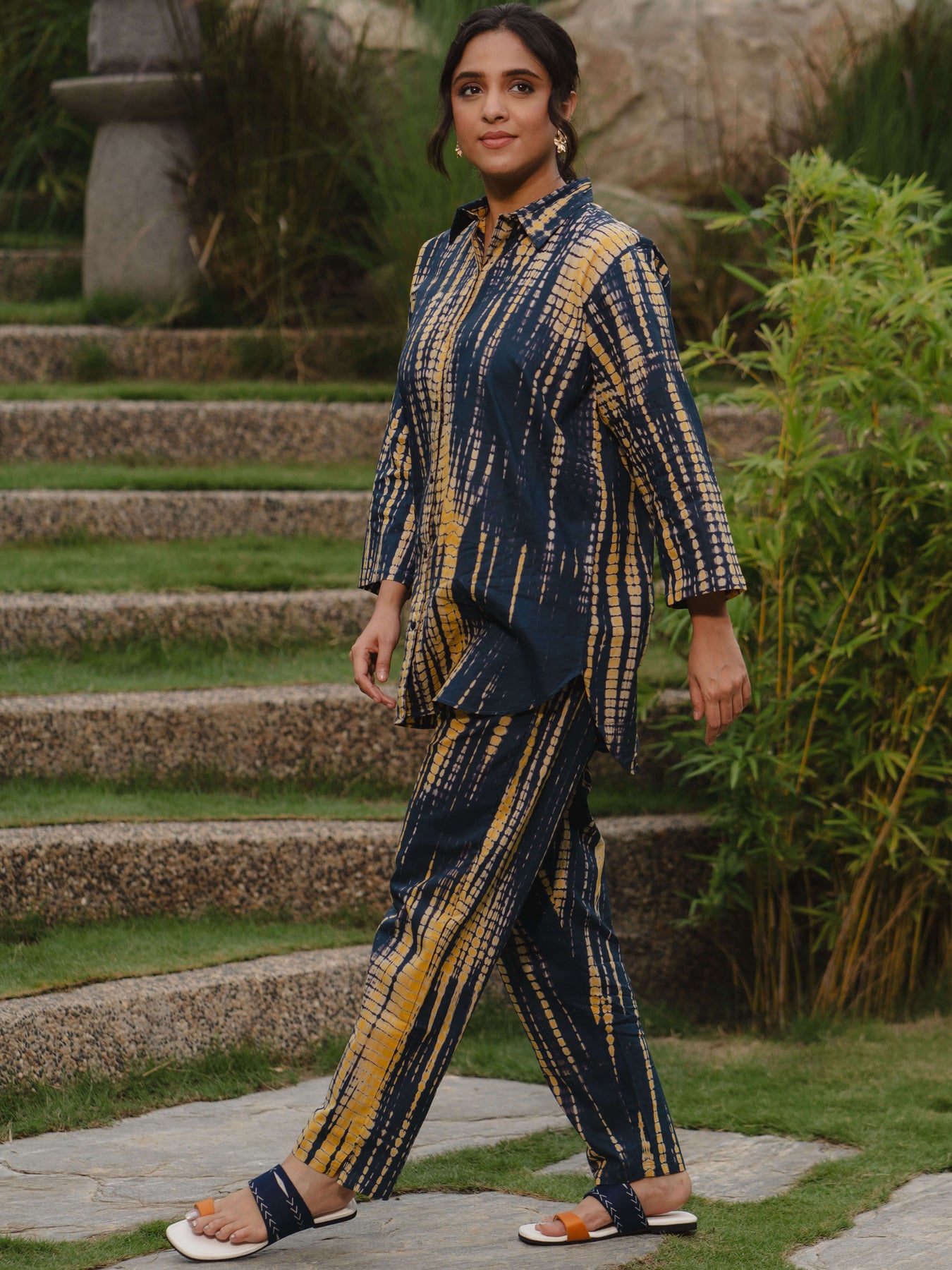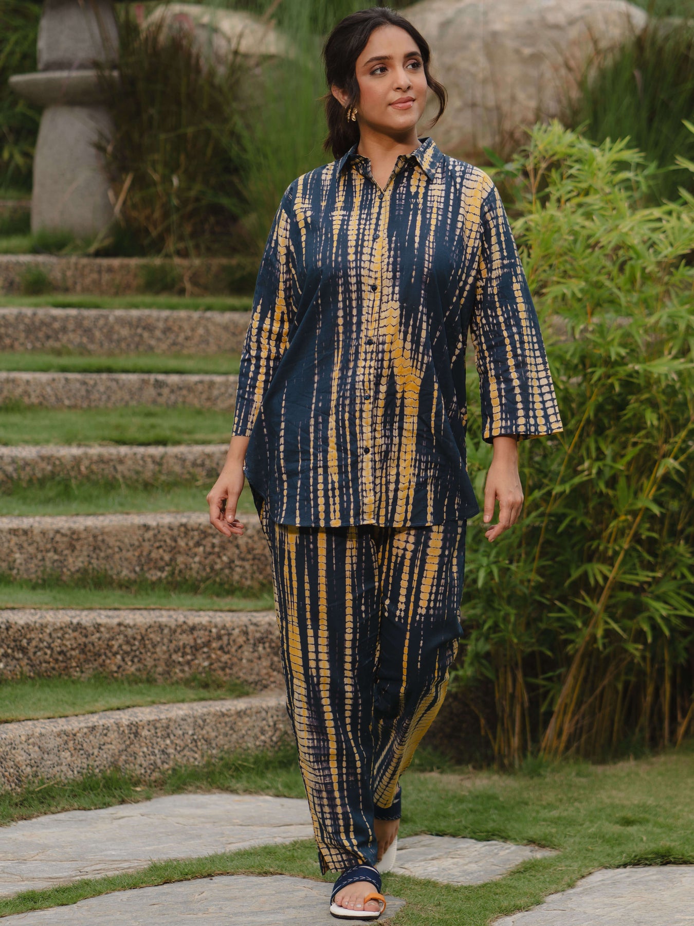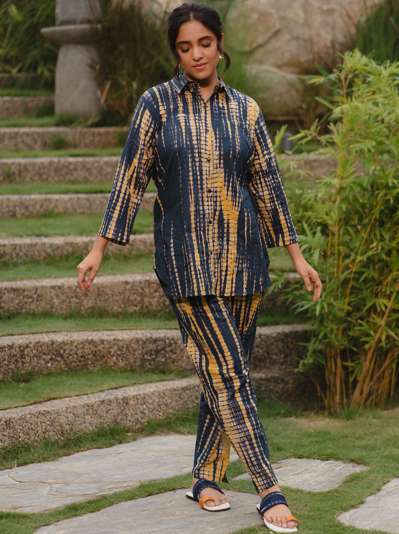 - Cotton Navy Blue Tie-Dye Printed consists of Kurti and pyjamas