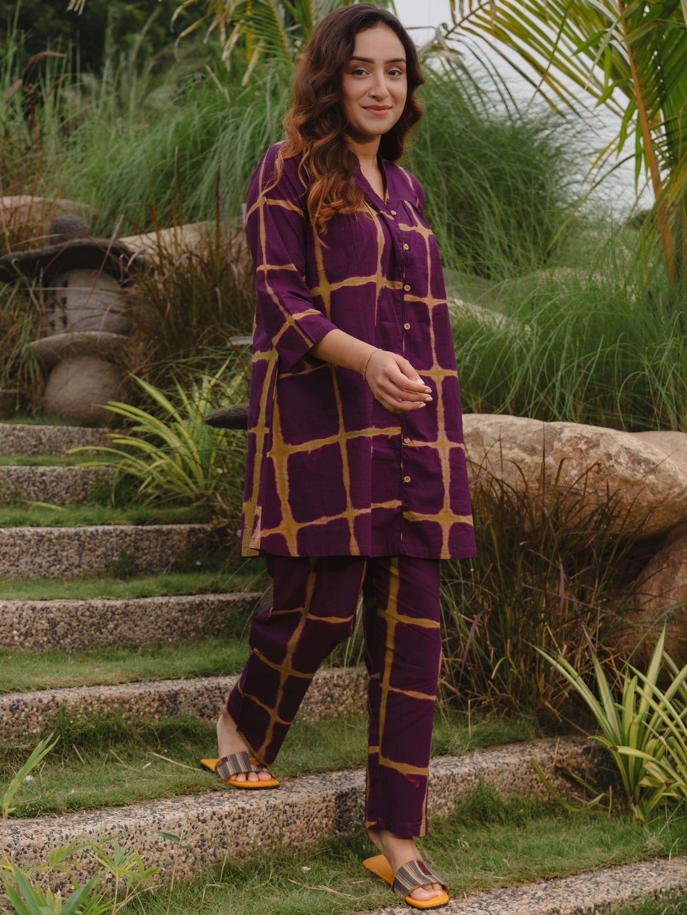 - Cotton Purple Checked Printed consists of Kurti and pyjamas