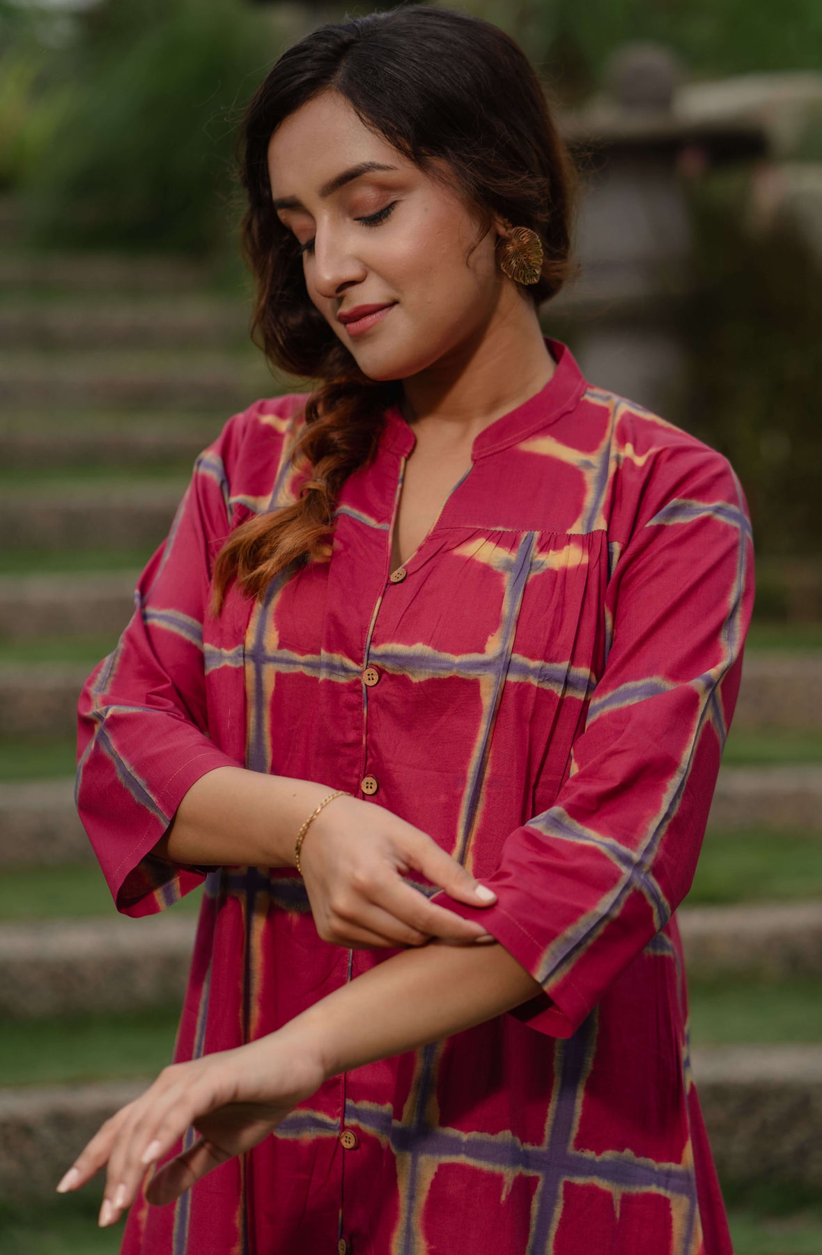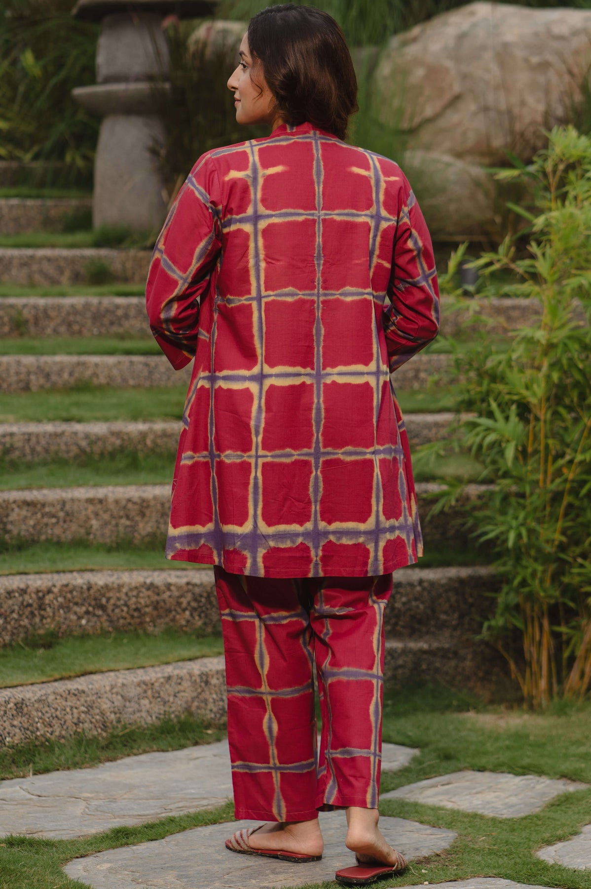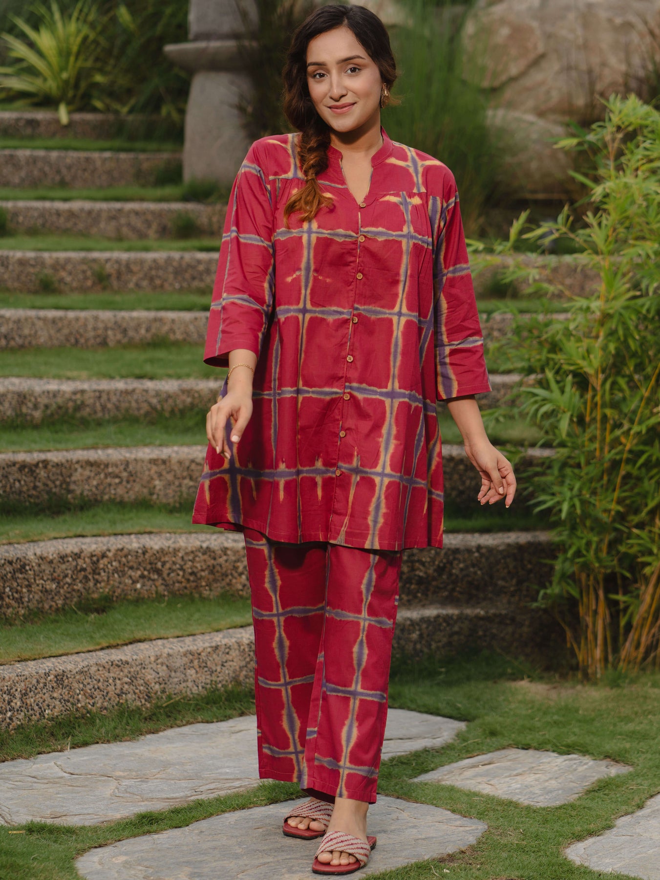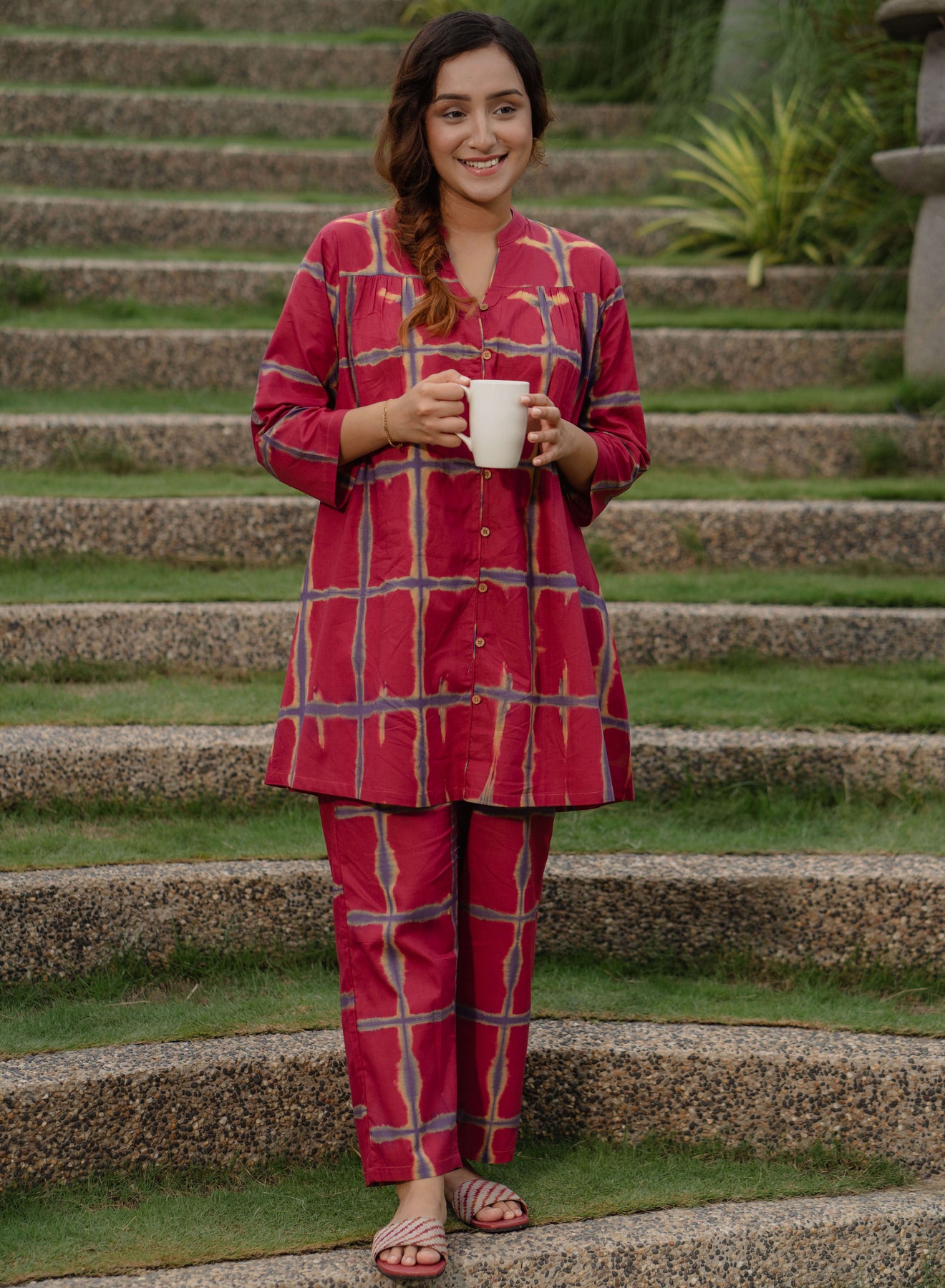 - Cotton Red Checked Printed Viscos consists of Kurti and pyjamas