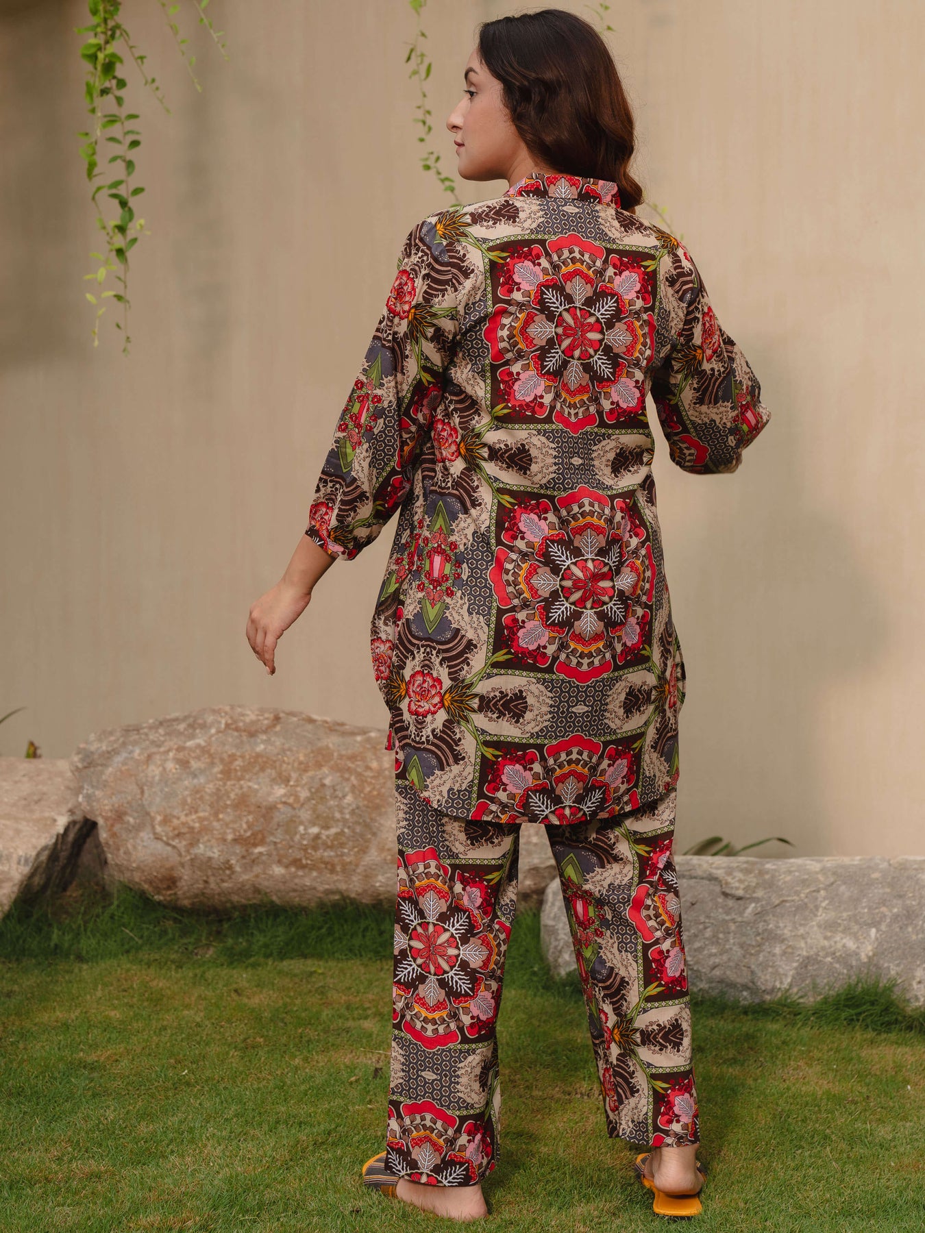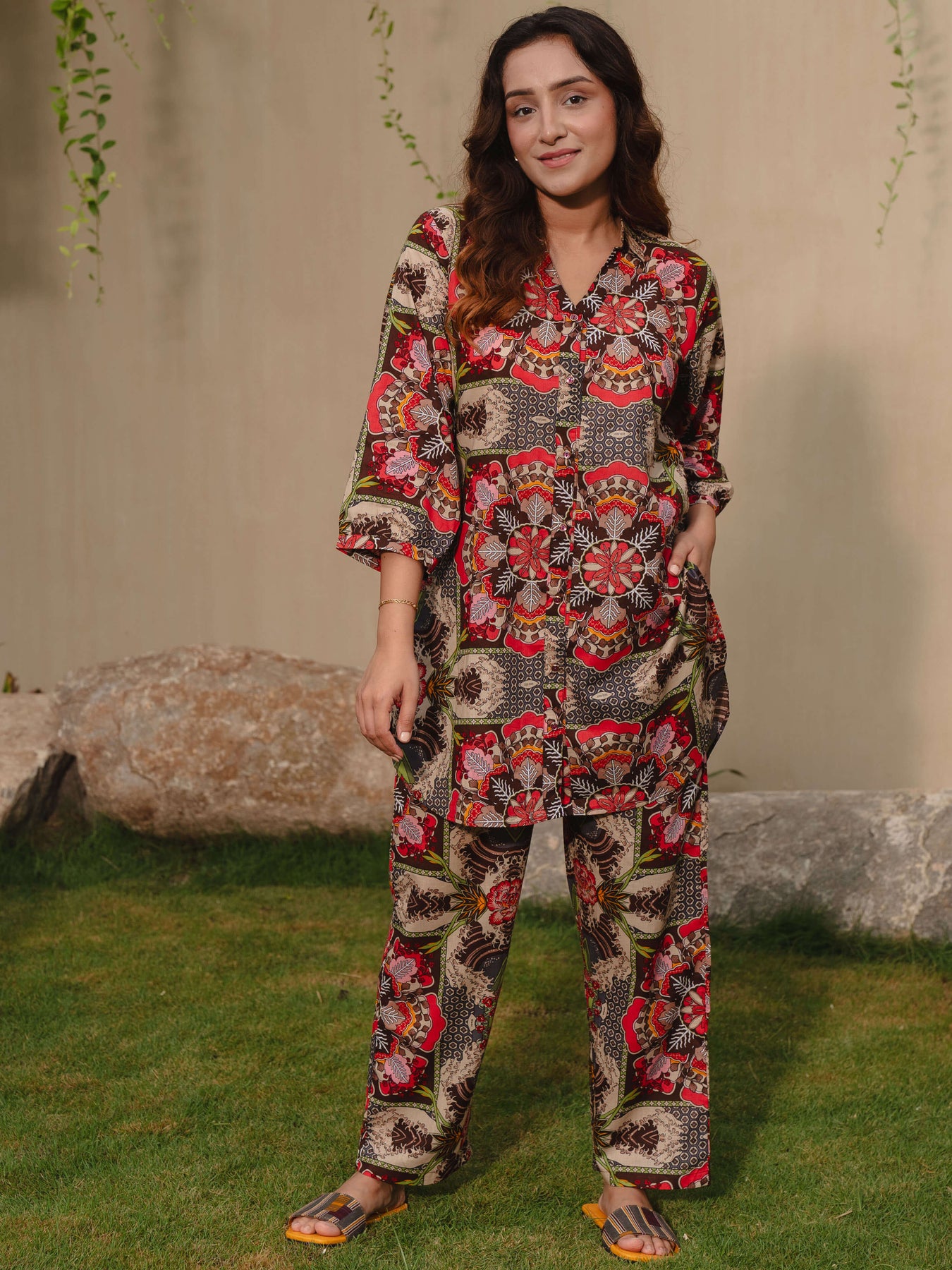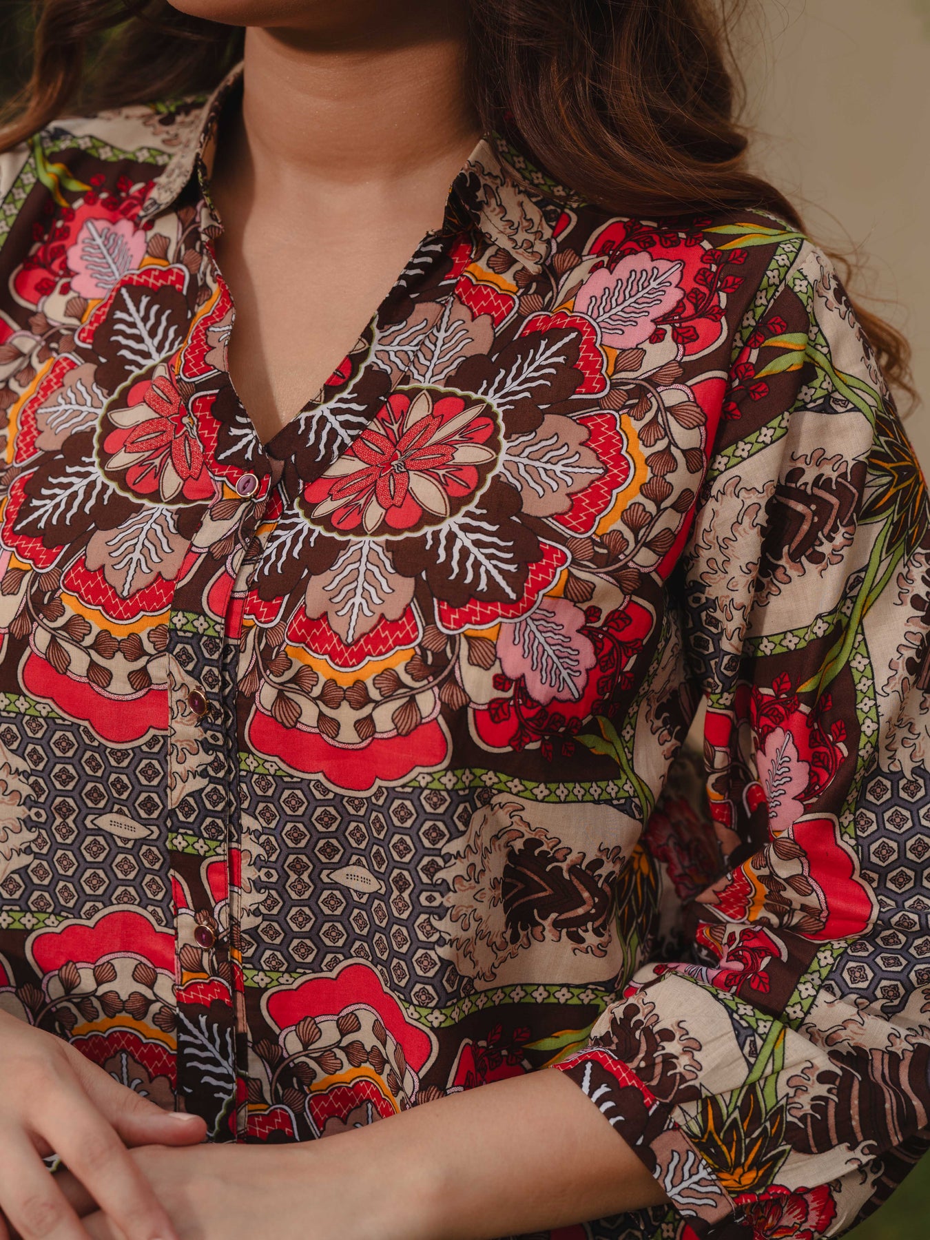 - Cotton Red Floral Printed Viscos consists of Kurti and pyjamas
