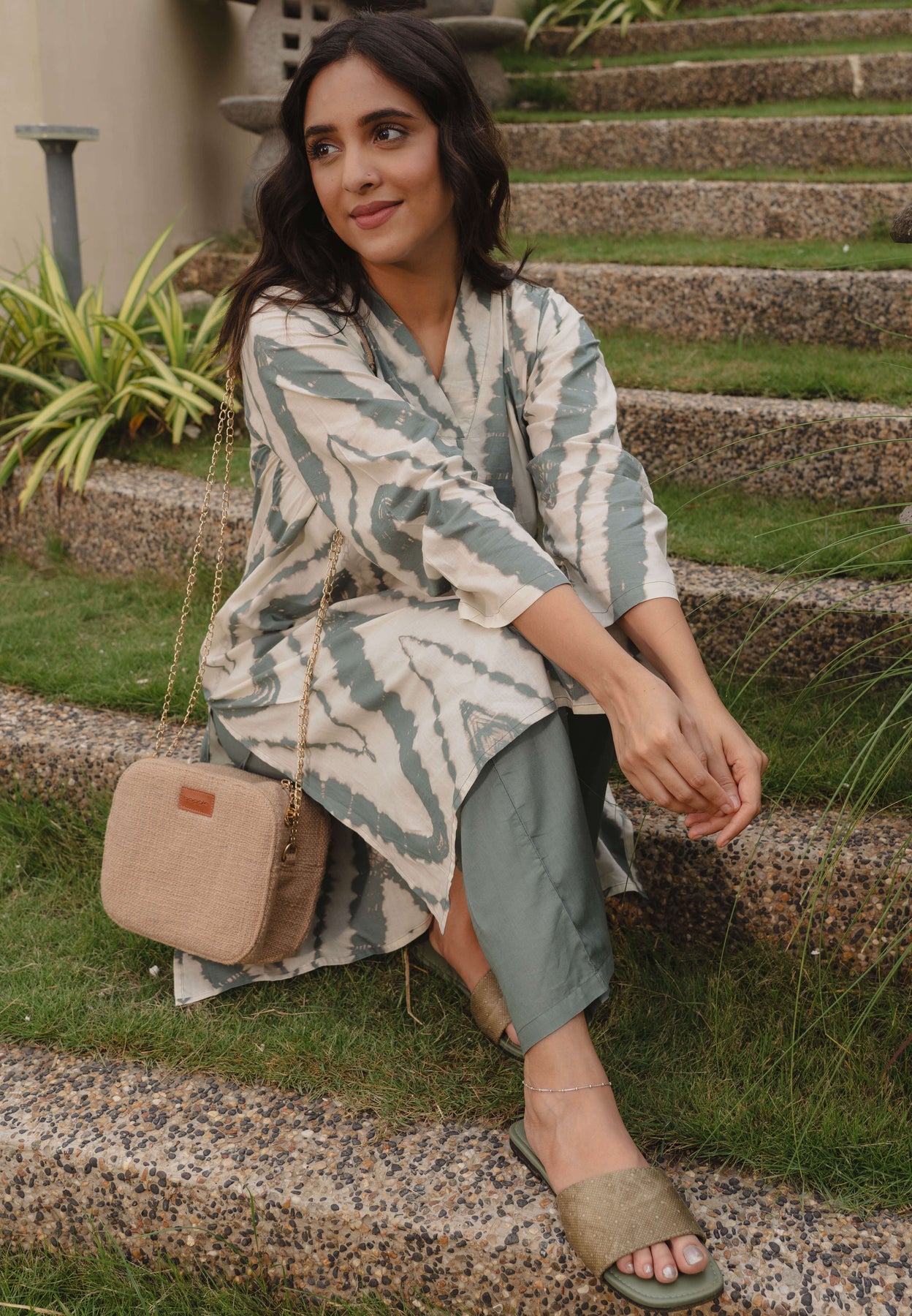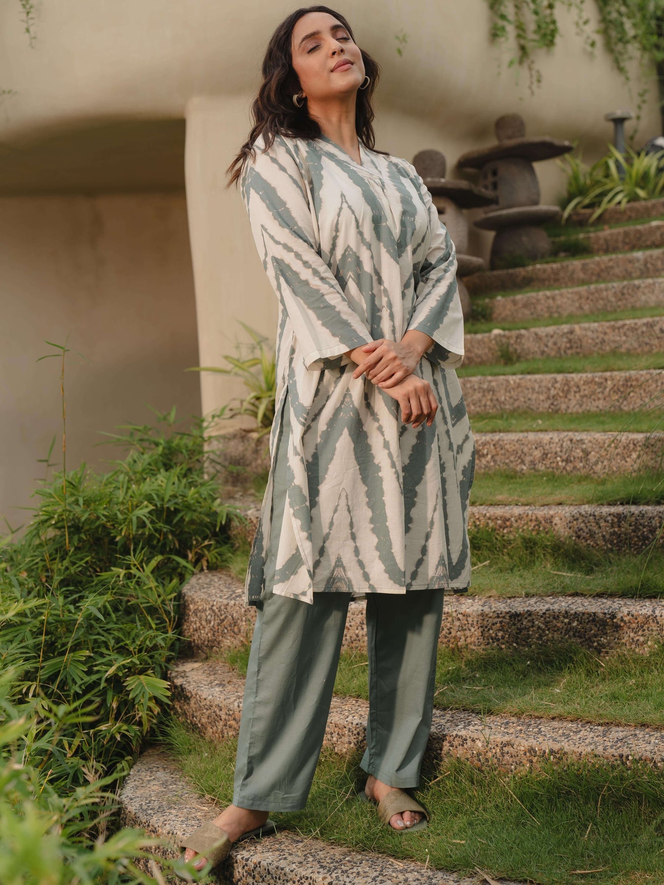 - Cotton Teal Green Abstract Printed Viscos consists of Kurti and pyjamas