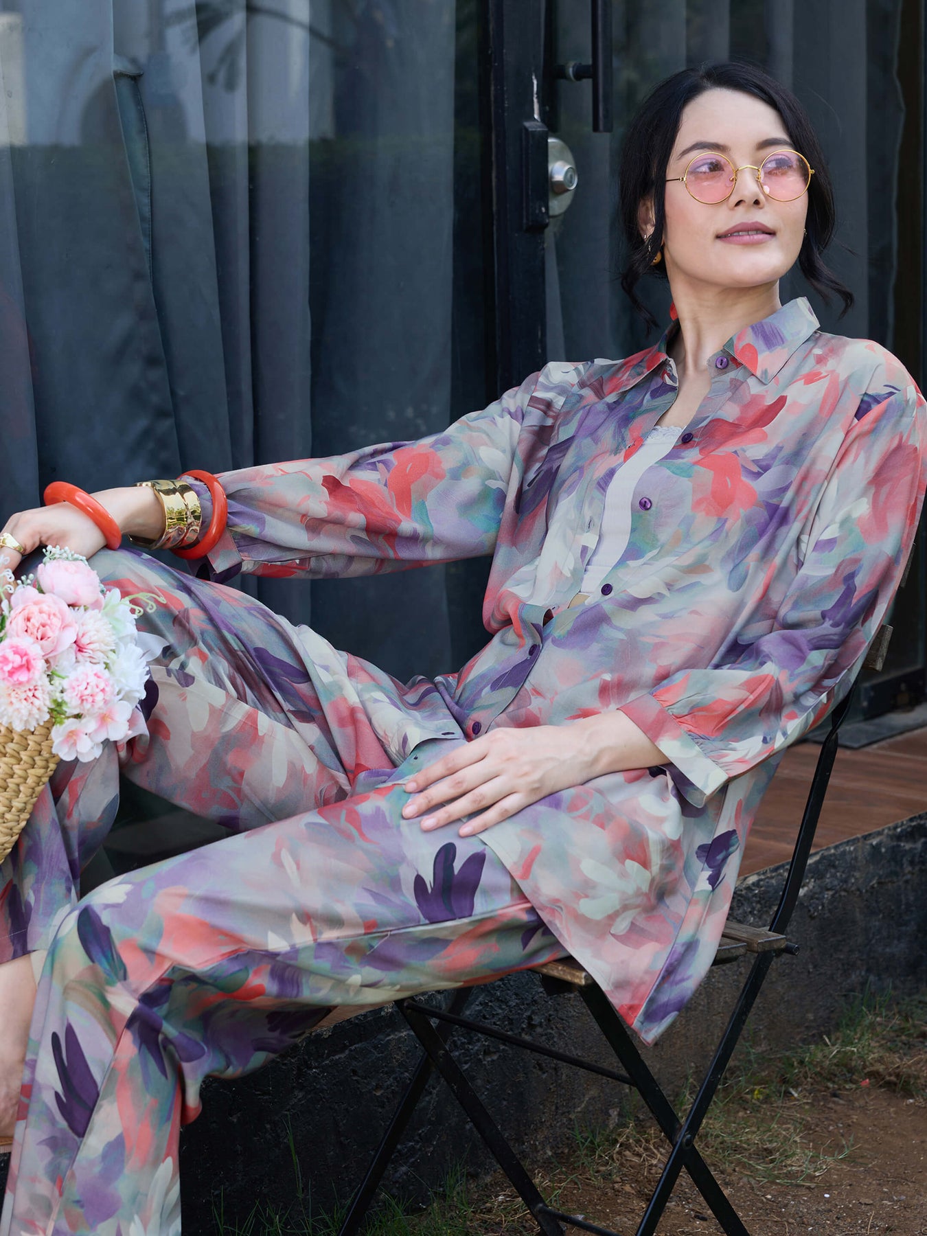 • Pink Floral Printed Viscos consists of shirt and pyjamas