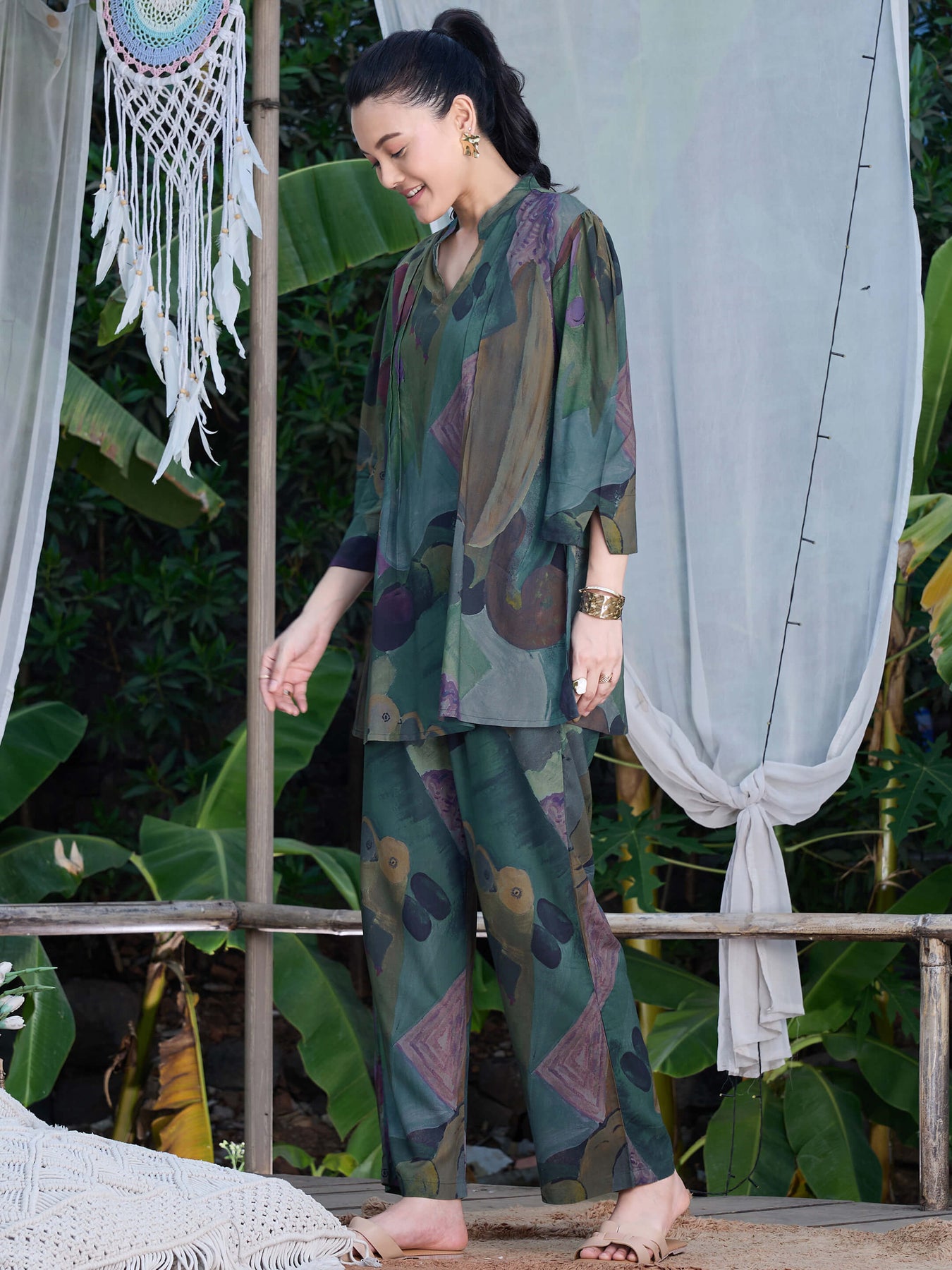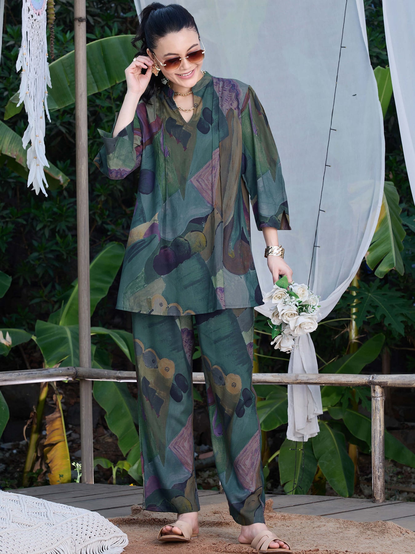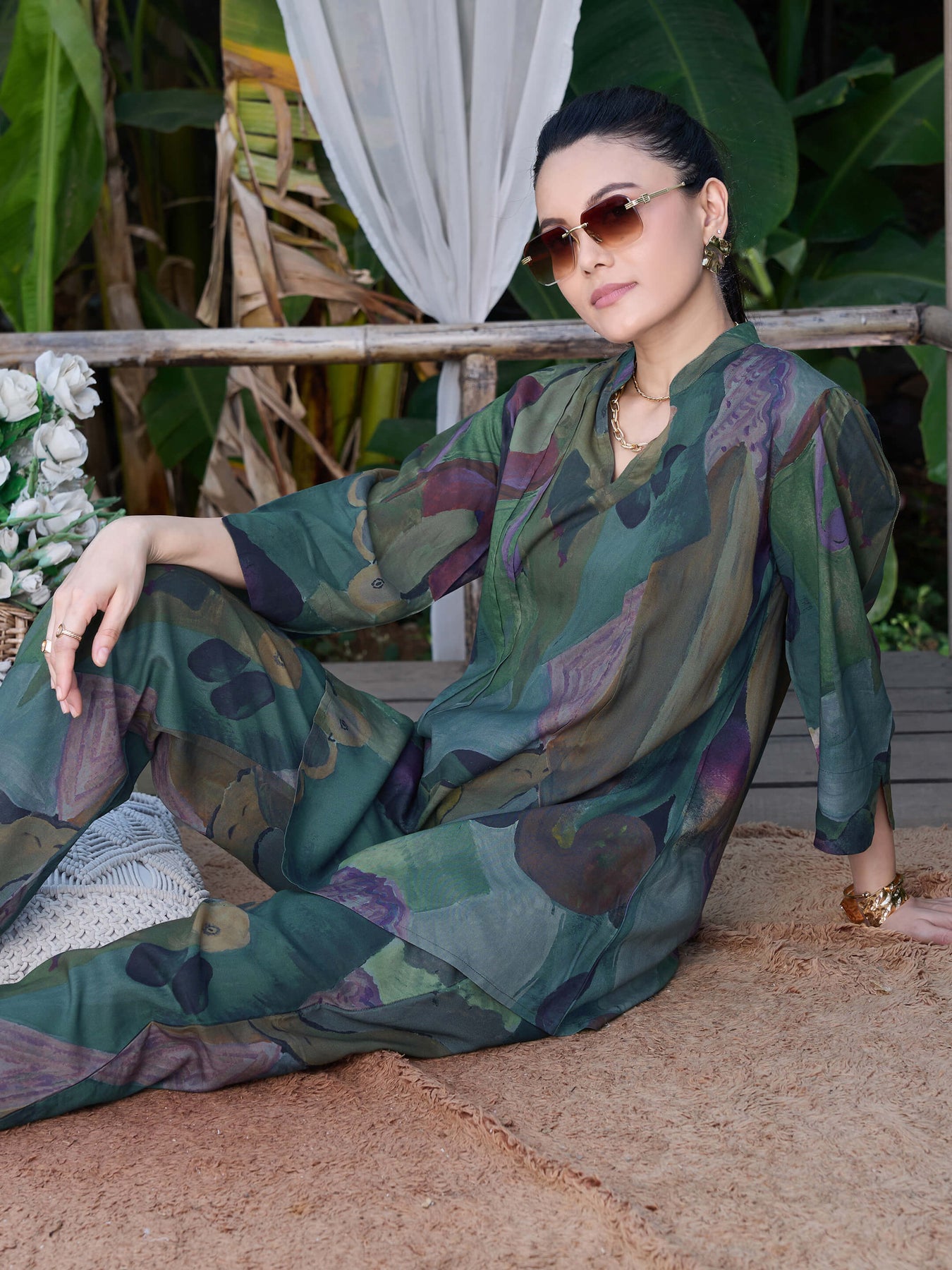 - Rayon Teal Green Abstract Printed Viscos consists of Kurti and pyjamas