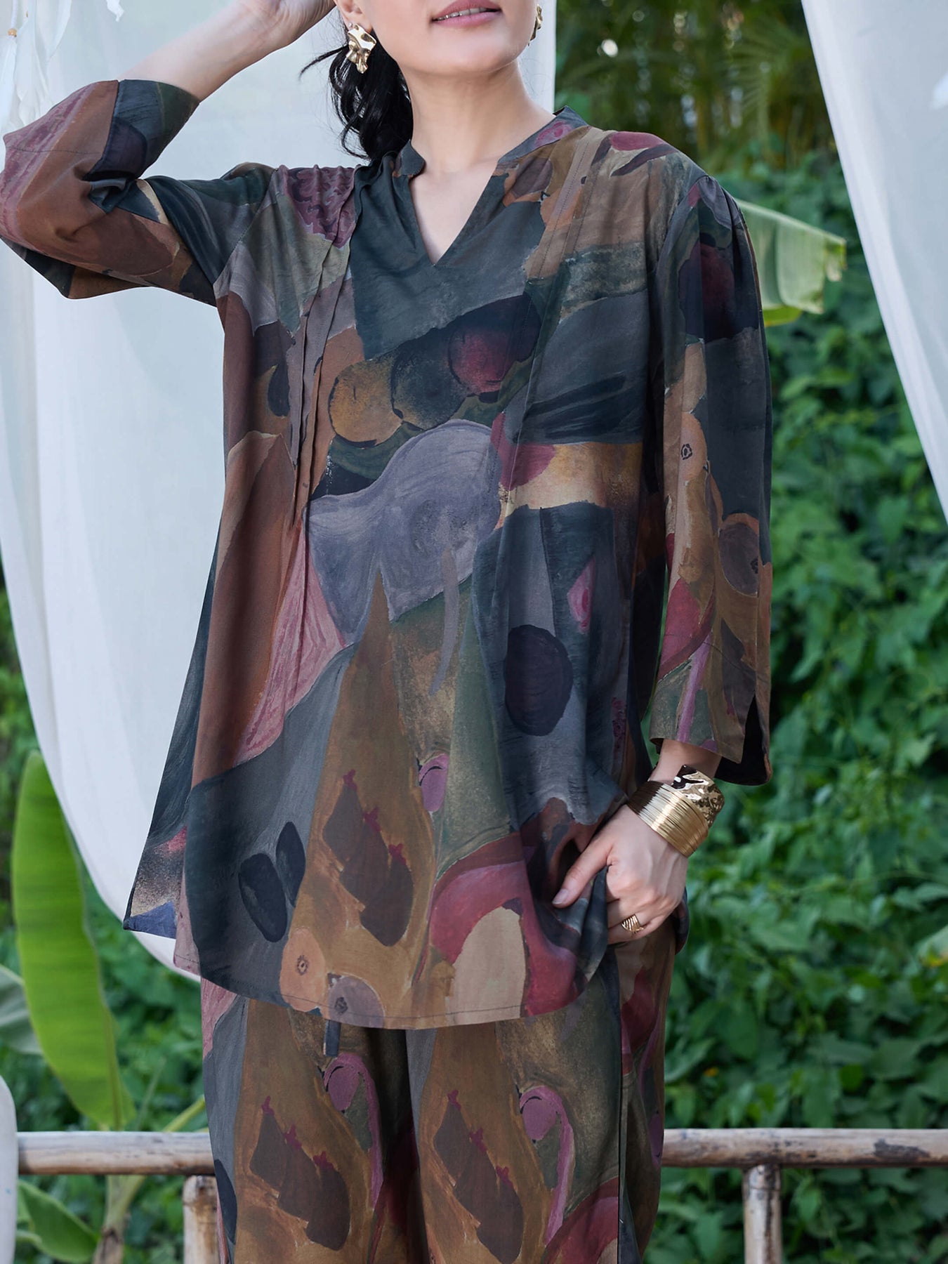 - Rayon Yellow Abstract Printed Viscos consists of shirt and pyjamas