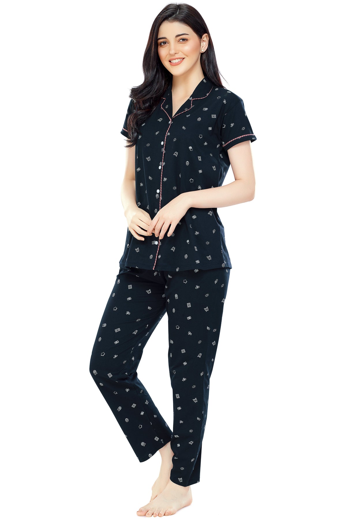 • Navy Blue night suit consists of shirt and pyjamas