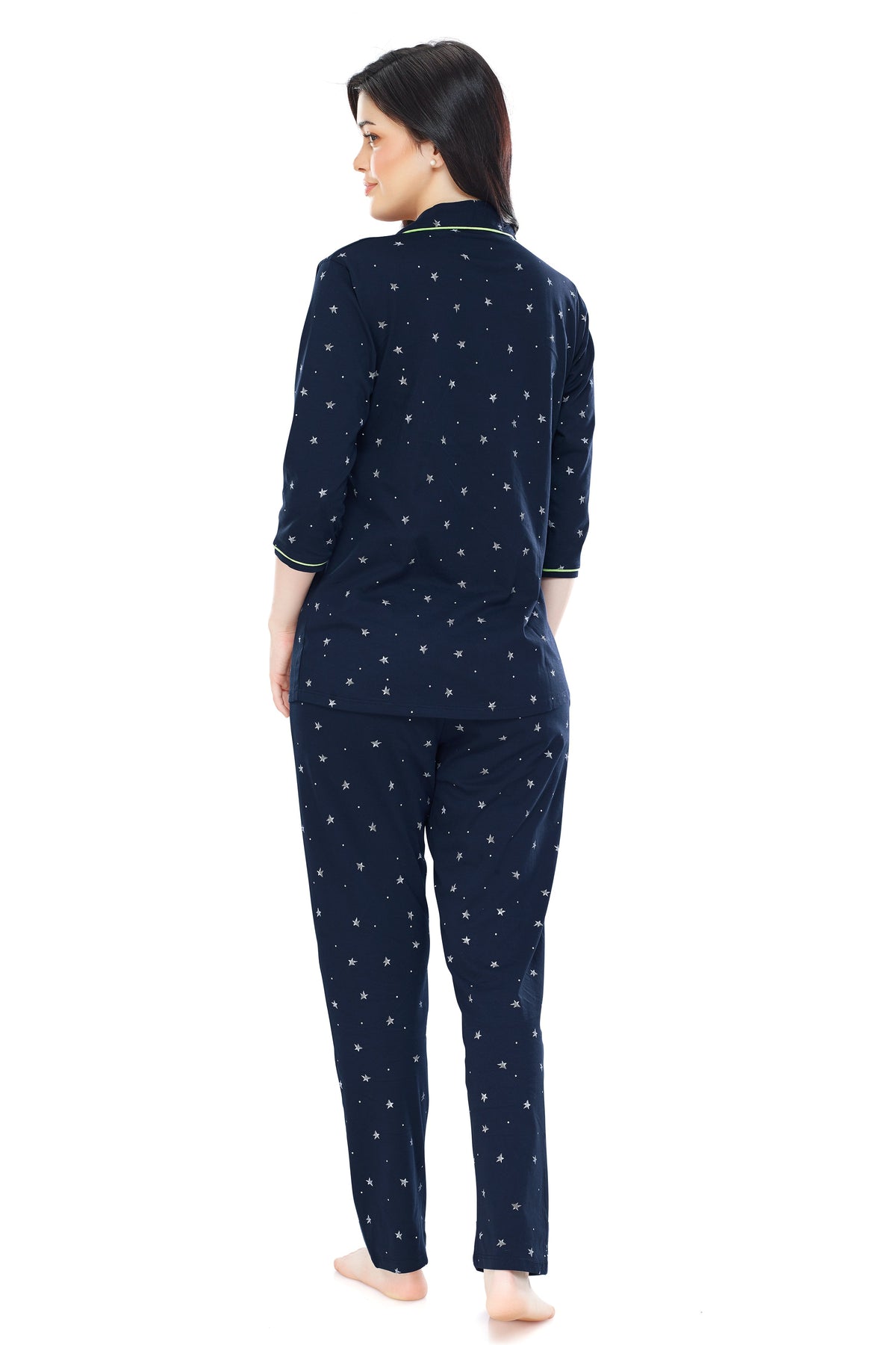 - Navy blue night suit consists of shirt and pyjamas