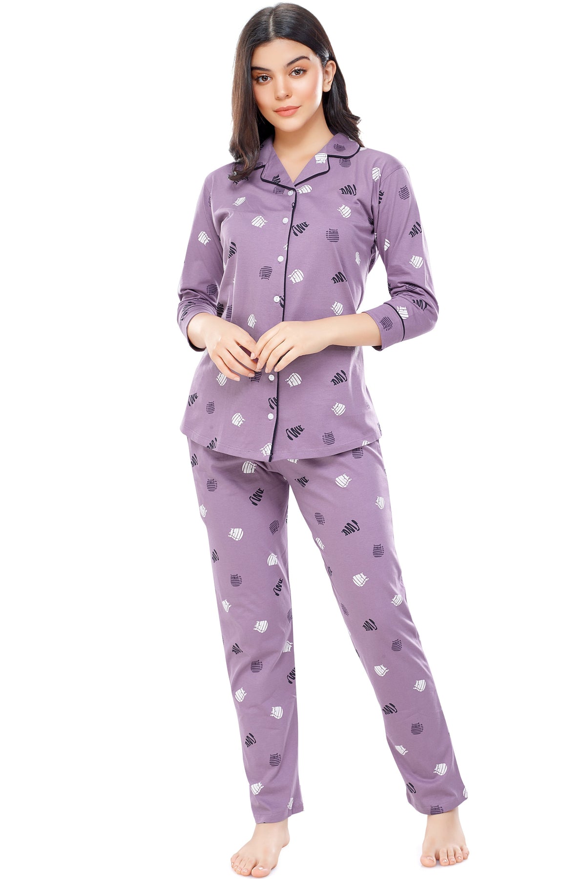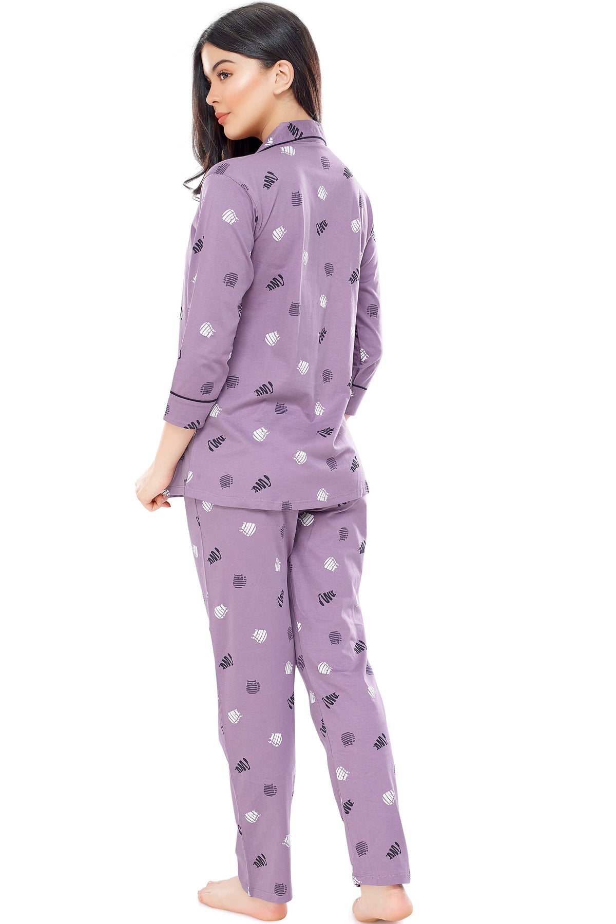 - Purple night suit consists of shirt and pyjamas