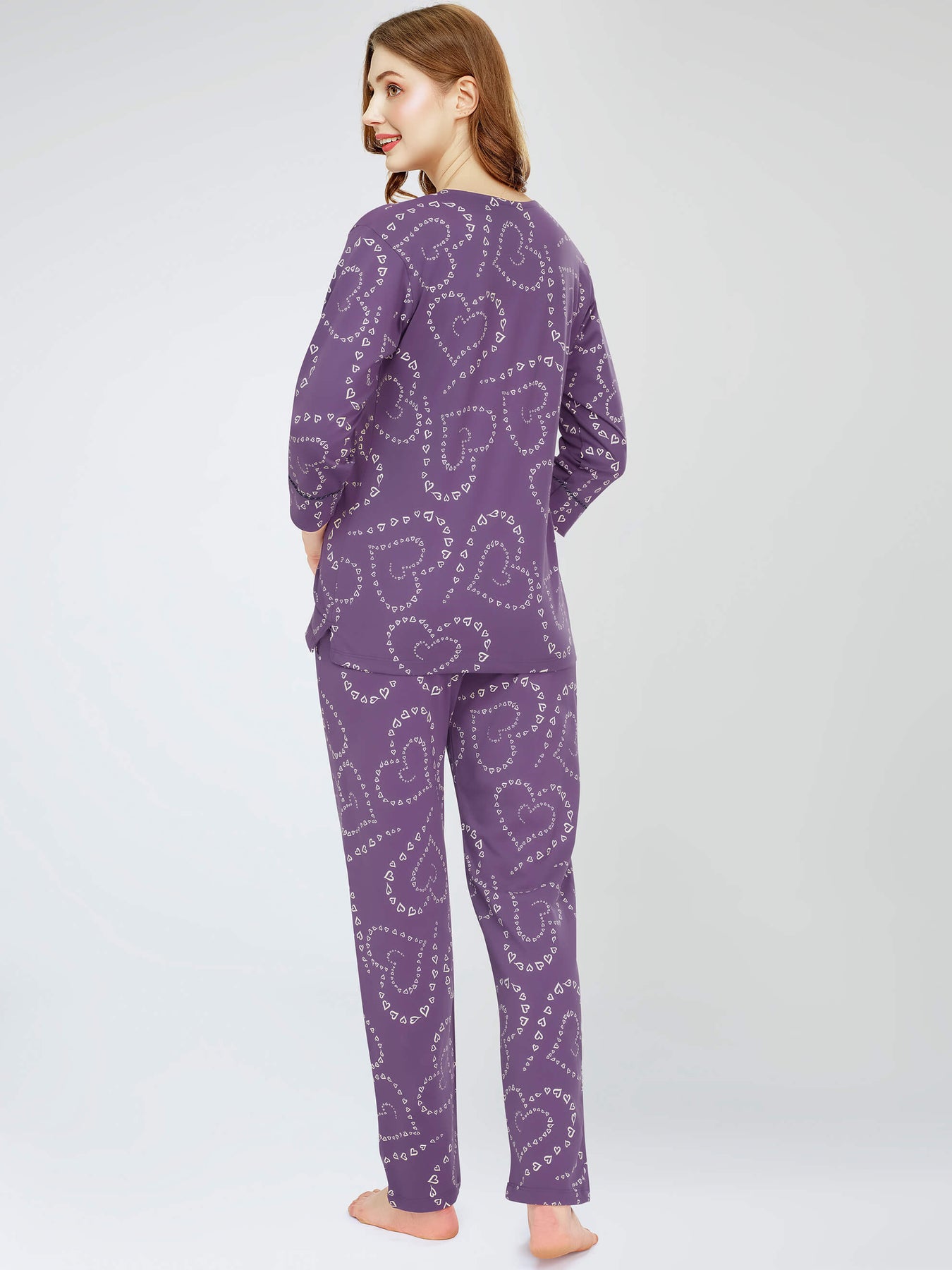 - Violet Heart Printed Cotton Night Dress of top and pyjamas