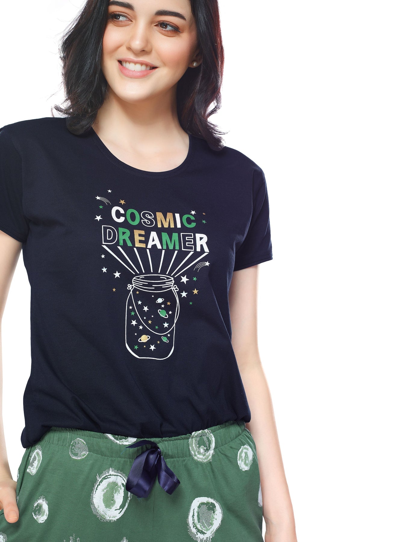- Black and green night suit consists of top and pyjamas