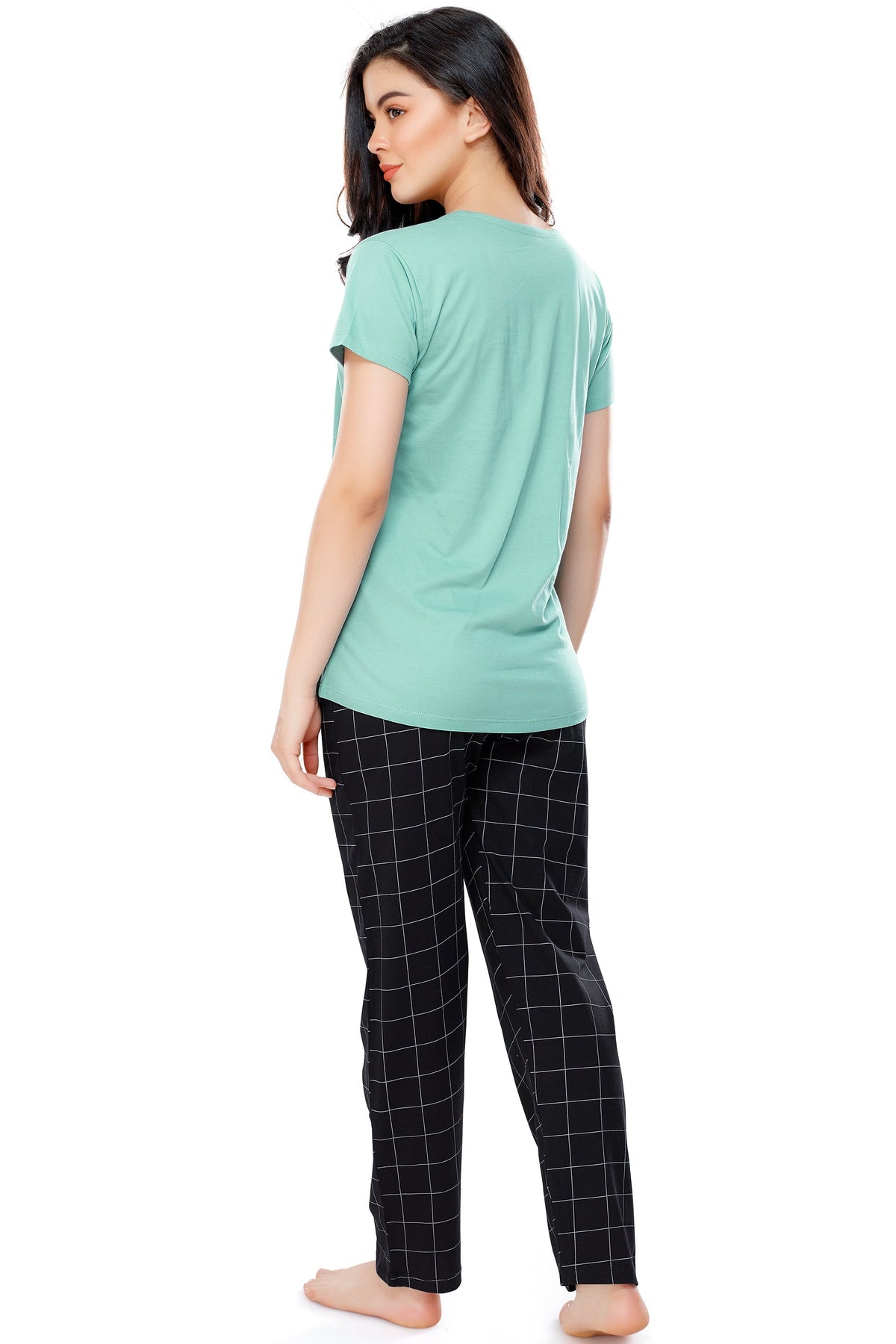 Green and black night suit consists of top and pyjamas