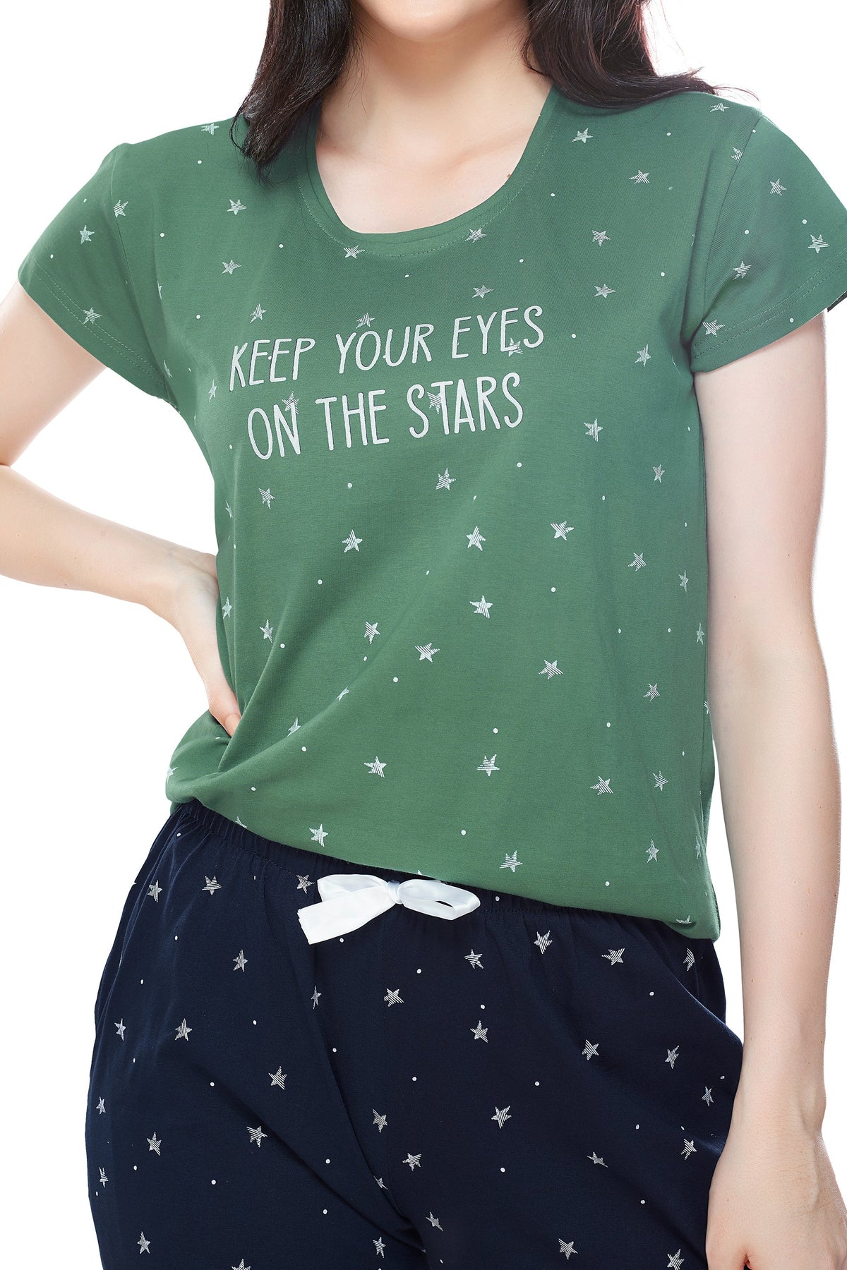 Women's Cotton Green Star Printed Stylish Night Suit Set