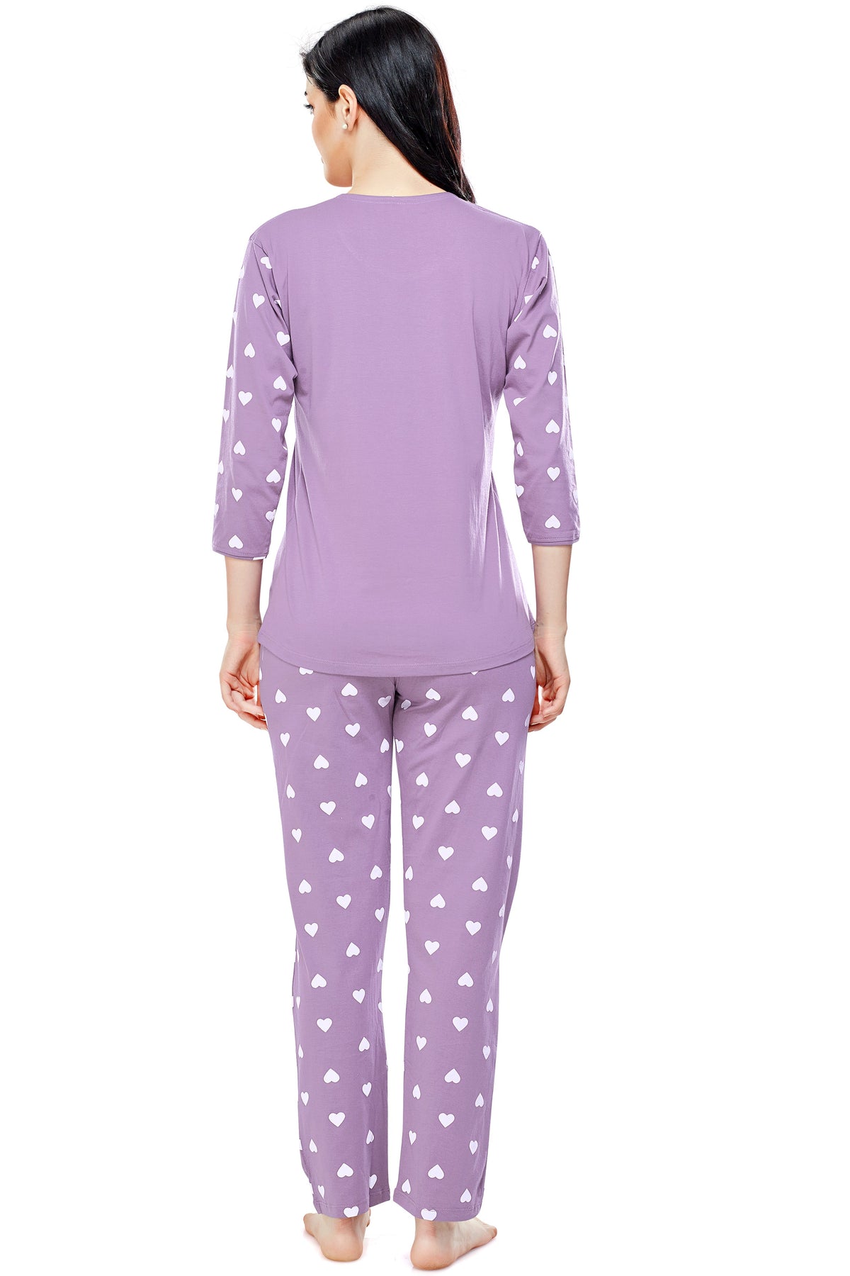 - Purple heart printed top, has a round neck, three-quarter sleeves